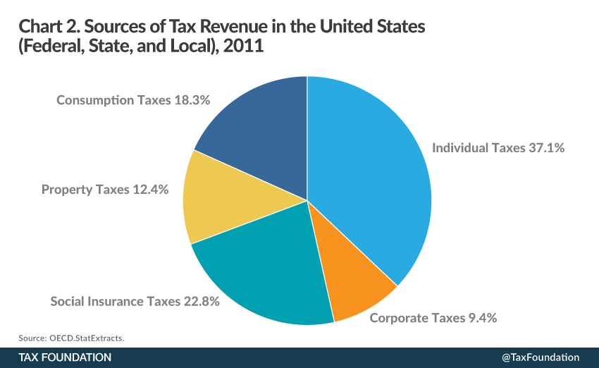 on how all levels of government in the world collects tax revenue. The United States levels of government (local, state and federal) were also given a separate breakdown. Here’s the pie chart: