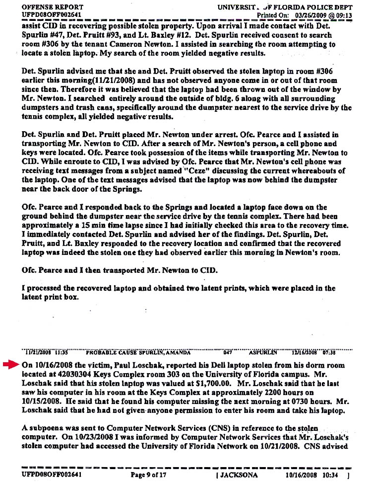The Smoking Gun website has the police report and evidence gathered against Cam Newton. The entire report can be read here. Below is 2 pages of it