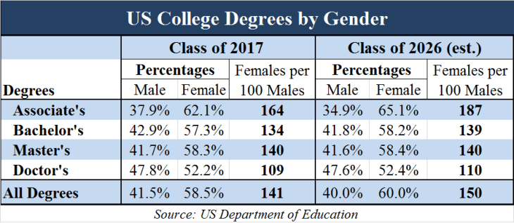 As the manufactured outrage grows in America over “gender equality”, one area that won’t draw much protest is male decline in universities.