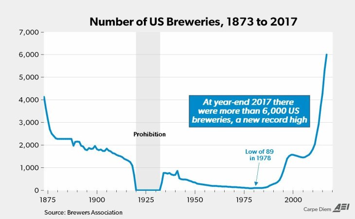 Three years ago, many economists and sites like this thought consumer exhaustion would slow down the expansion. Add in a nice tax cut from the federal governmentand local governments being very receptive to their growth, beer brewery growth has exploded.