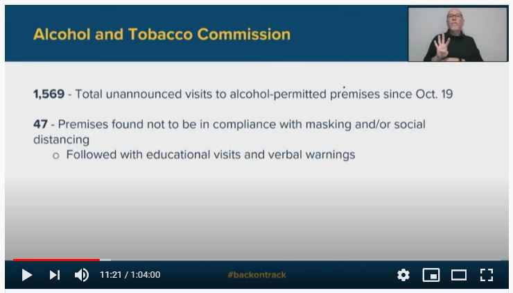 Governor Holcomb has several agencies that does random site inspections throughout the state to see if mask compliance is being followed. One such agency is the state’s Alcohol and Tobacco Commission. Since October 19, they visited over 1569 alcohol sites (bars/liquor stores/restaurants). A total of 47 were not in compliance with employees or public not wearing masks. That means 96.9% of businesses were in compliance.