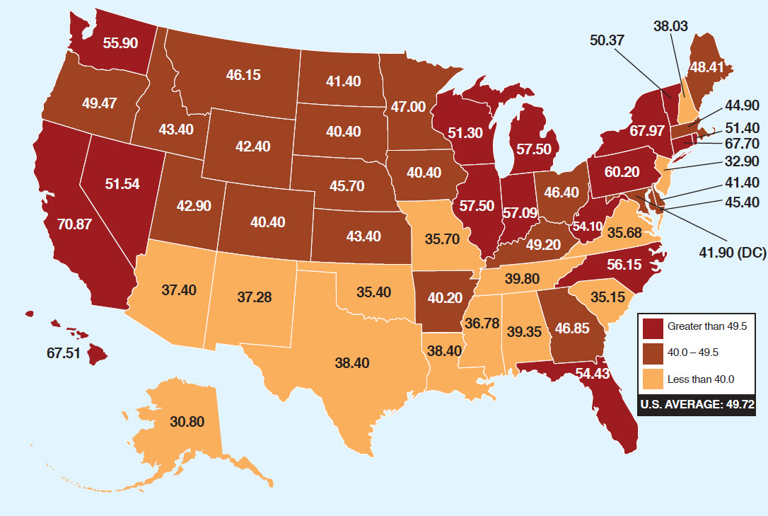 Continue reading →Consumers of gasoline pay state/federal taxes when they purchase gas. The tax is per gallon. The federal tax on gasoline is 18.4 cents/gallon. State taxes vary greatly. The map below shows both state/federal. Just deduct the federal to see what you pay in each state.